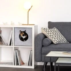 Die Höhle beeindruckt durch ihr modernes Design, welches sich optimal in verschiedenste Einrichtungsstile einfügt. Die Außenseite und eine Kissenseite sind mit einem flauschigem Flokatistoff überzogen, sodass die Höhle zu einem gemütlichen Lieblingsort für deinen kleinen Vierbeiner wird.