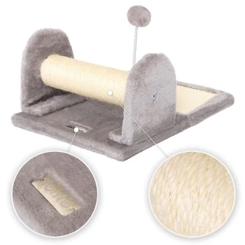 Dieser hochwertige Kratzteppich mit viel Sisal und weichem Plüsch ist dank seiner Größe auch für Jungkatzen optimal geeignet. Eine großartige Beschäftigung bietet der bewegliche Spielball. Durch Berühren wird durch die schnellen Bewegungen der Spiel- und Jagdtrieb Ihrer Katze geweckt. Für die ideale Krallenpflege steht Ihrem Liebling eine Sisalkratzfläche und eine robuste Sisalkratzstange zur Verfügung. Die Maße dieses kompakten Kletterbaums in der Farbe Hellgrau betragen 40×30 cm. Eine Aufbauanleitung und das Montagewerkzeug werden natürlich mitgeliefert.