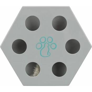- 6-eckiges Gehäuse mit unterschiedlich großen Öffnungen, durch die Ihre Katze mit der Pfote nach den Federn greifen kann
